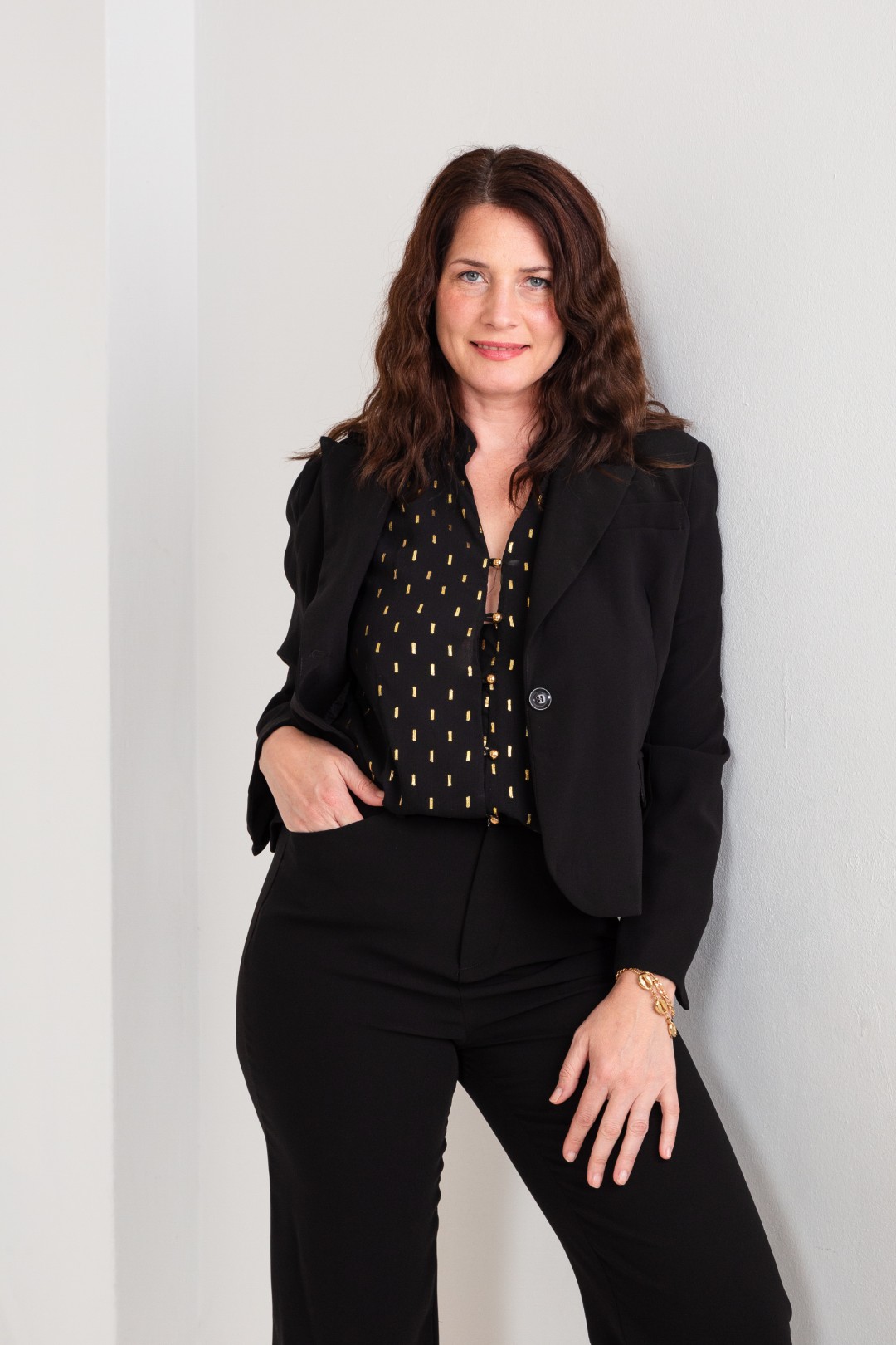 Blazer cuello solapa corto, con un boton y tajos en el puño.