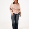Blusa cuello redondo con voladitos en el cuello y el puño.