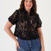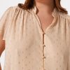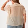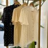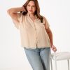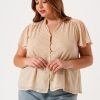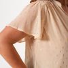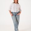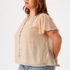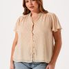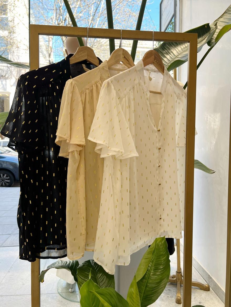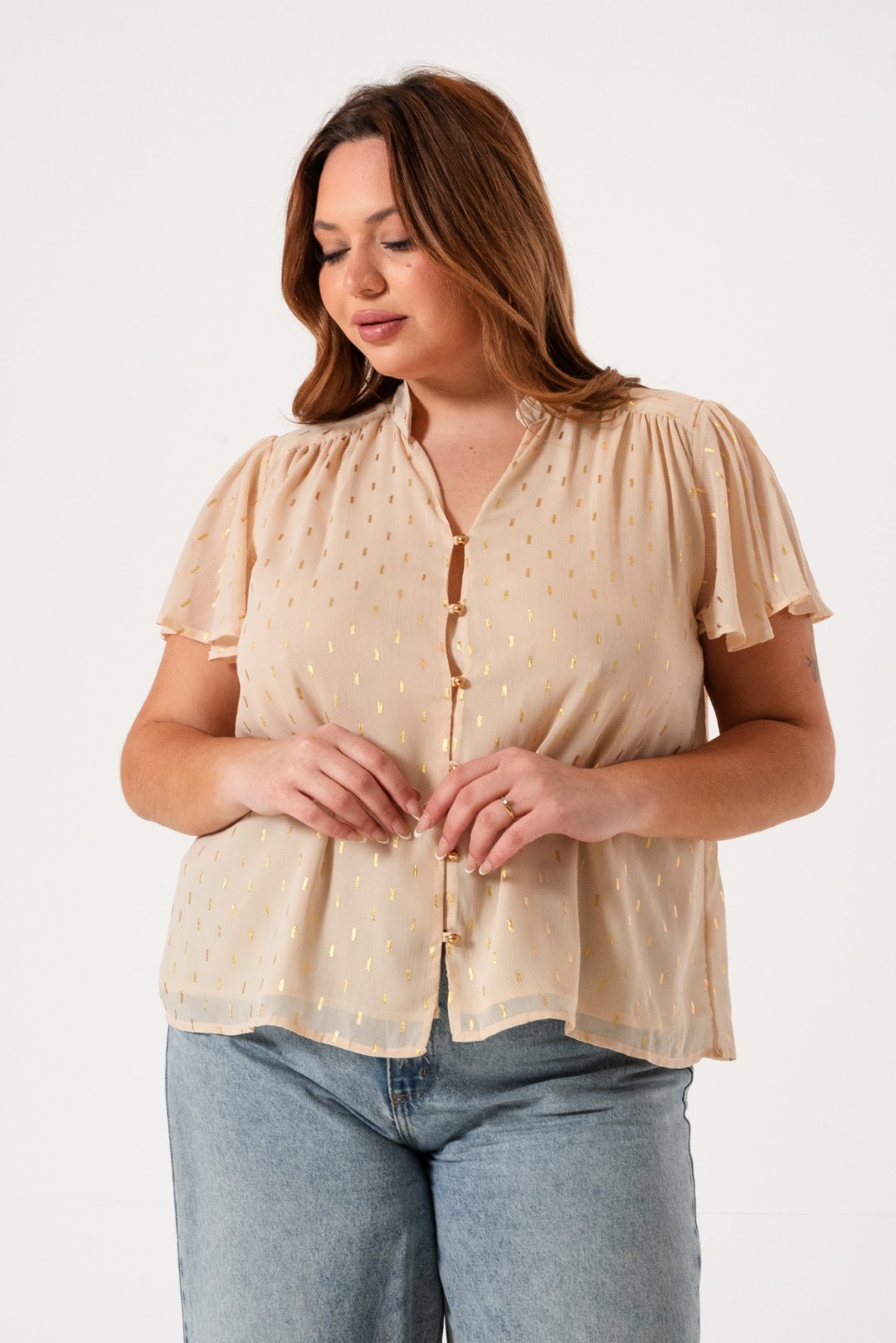 Camisa mangas voladito, cuello en V. La delantera es doble. No trasluce.