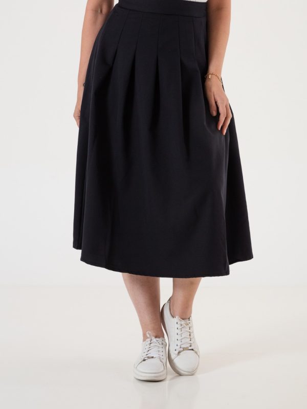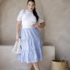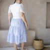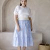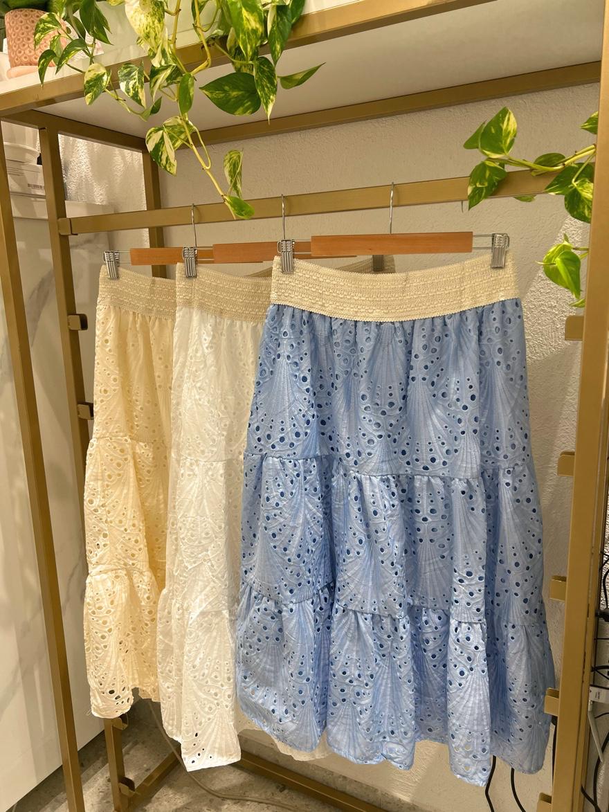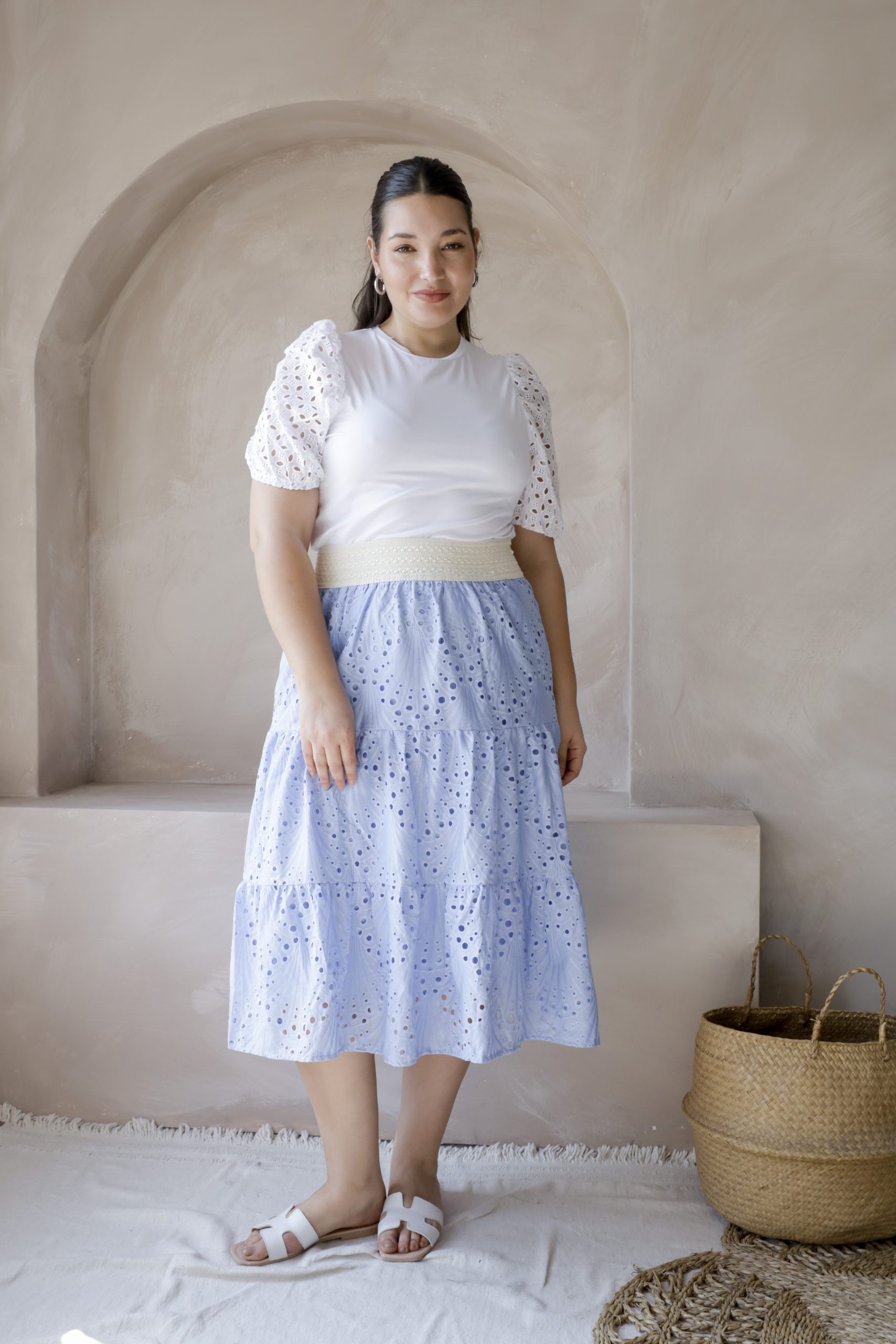 Pollera midi con cintura con elastico. Viene con forrada. El broderie NO TIENE SPANDEX.